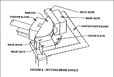 Using only the electric foot pedals (automatic models) or the manual pedal control (manual models) proceed to bend until you have matched the bend in the sample. Record the bend depth on your care (by reading the digital read out on automatic models or the Depth of Bend plate on all non-automatic models). Also note the bend number: i.e. 1, 2, 3, 4, etc. |